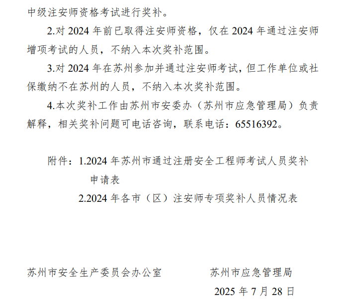 关于对全市2024年通过注册安全工程师考试人员实施奖补的通知