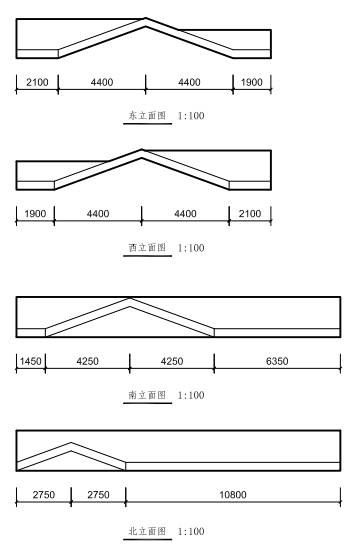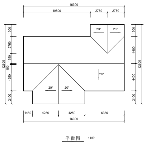 3、按照下图平、立面绘制屋顶,屋顶板厚均为400,其它建模所需尺寸可参考平、立面图自定。结果以“屋顶”为文件名保存在考生文件夹中。(20分)