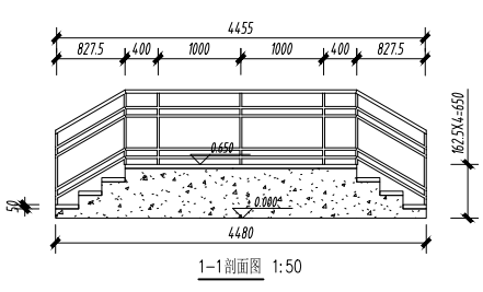 二、请根据下图创建楼梯与扶手,楼梯构造与扶手样式如图所示,顶部扶手为直径40mm圆管,其余扶栏为直径30mm圆管,栏杆扶手的标注均为中心间距。请将模型以“楼梯扶手”为文件名保存到考生文件夹中。(20分)