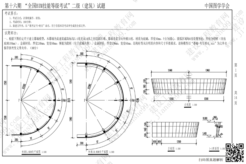 2021年全国BIM技能等级上半年考试预计在6月份,建设工程教育网为大家整理了第十六期全国BIM技能等级考试BIM二级(建筑)试题第一题,希望对BIM考生们有所帮助!