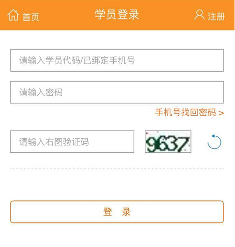 进入登录页面找到“手机号找回密码”,输入正确的学员代码/已绑定手机号码、随机验证码,即可找回您的密码。