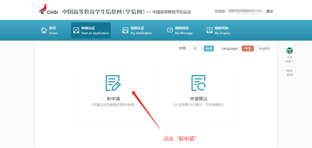 5.点击“学位认证申请”。