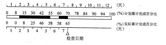 某混凝土工程按计划12天完成,下图中标出了截止第7天末的实际施工时间,下列表述正确的是( )。