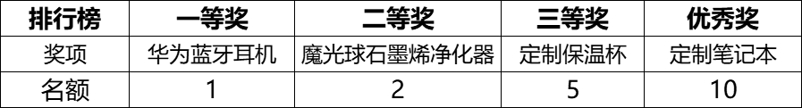 | 排行榜 | 一等奖 | 二等奖 | 三等奖 | 优秀奖 |