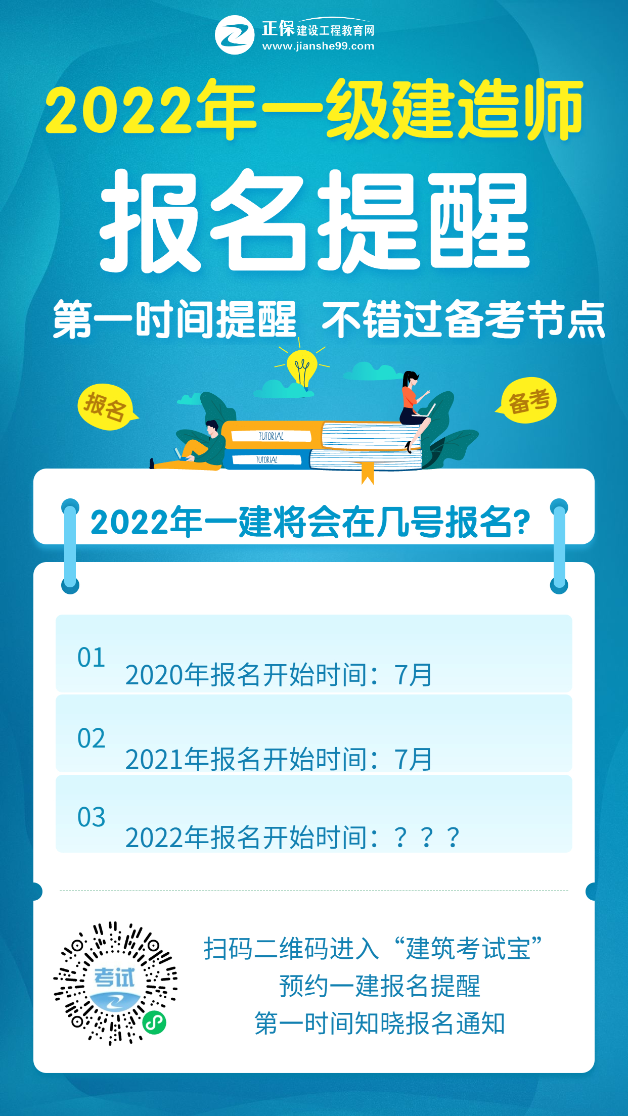 当然!2022年一建考试报名时间还需要等待官网公布,希望小编整理到的内容可以帮助到大家,同学们也可以在“建筑考试宝”中预约报名提醒!