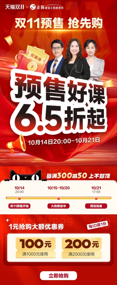 【抢】天猫双11建设工程教育网课程低至6.5折购
