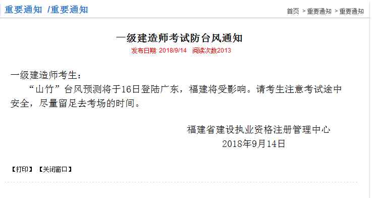 “山竹”台风预测将于16日登陆广东,福建将受影响。请考生注意考试途中安全,尽量留足去考场的时间。