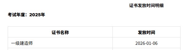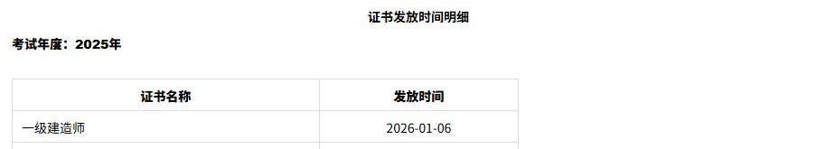 摘要:成都市人力资源和社会保障局发布成都市专业技术资格证书发放情况,2025年一级建造师证书于2026.1.6日正式发放,具体信息如下: