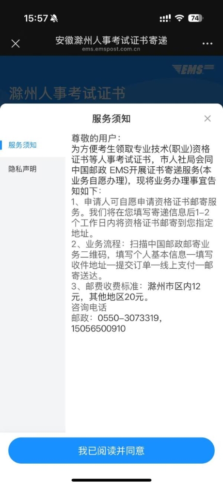 领取地点:滁州市行政服务一楼大厅公共服务区E06号邮政速递窗口