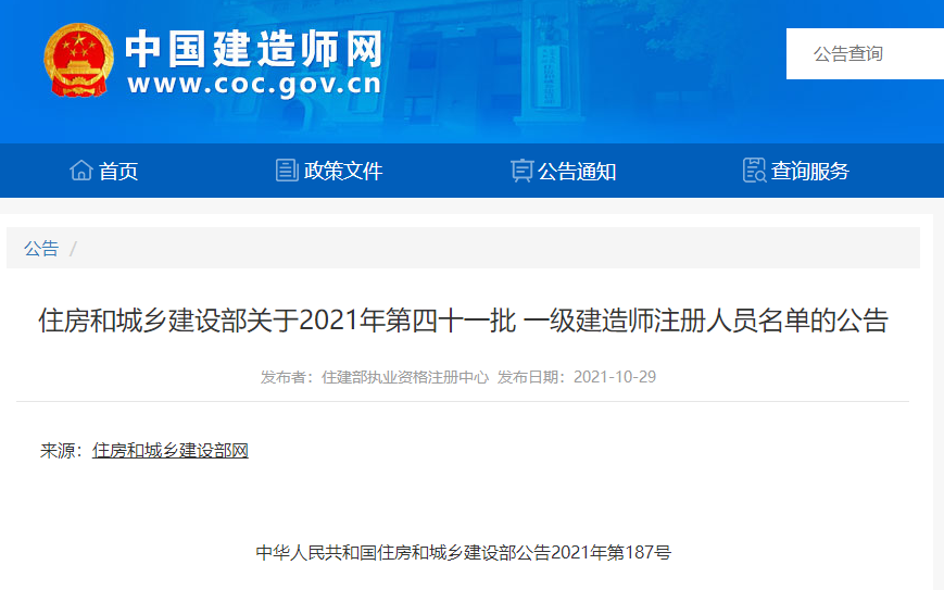 住房和城乡建设部发布《住房和城乡建设部关于2021年第四十一批一级建造师注册人员名单的公告》,15076人符合注册条件,准予注册。具体内容如下: