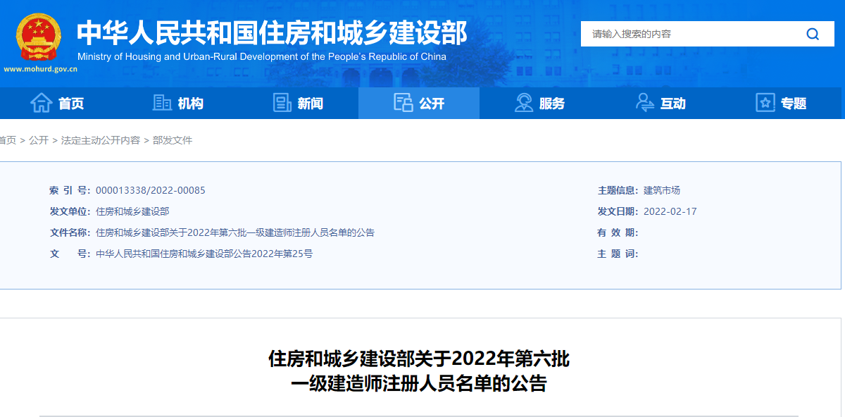 住房和城乡建设部发布《住房和城乡建设部关于2022年第六批一级建造师注册人员名单的公告》,5113名符合注册条件,准予注册。具体内容如下: