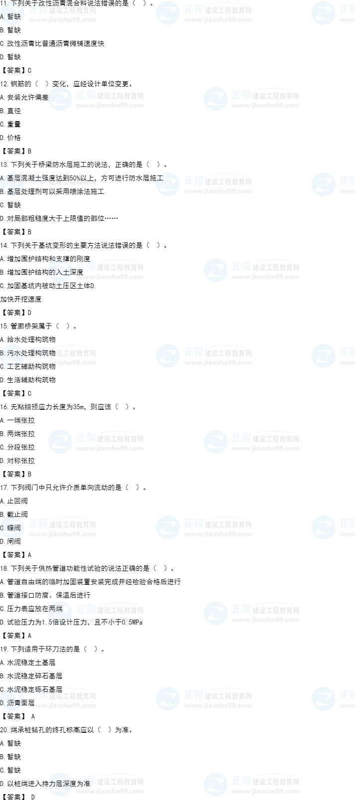 2022年一级建造师补考市政工程试题及答案解析11-20题。建设工程教育网考后将会根据学员反馈,及时汇总2022年一级建造师补考市政工程试题及答案解析分享给大家,并且会及时做出一级建造师答案解析,希望能为广大一建考生朋友带来帮助。