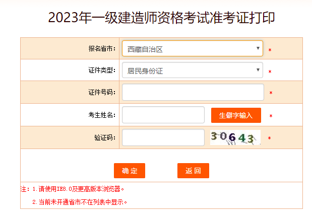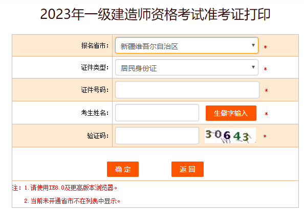 新疆维吾尔自治区2023年一级建造师准考证打印入口已开通