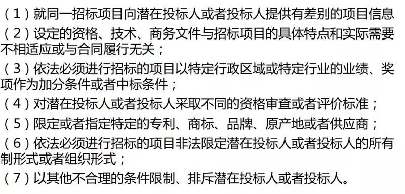 招标人有下列行为之一的,属于以不合理条件限制、排斥潜在投标人或投标人: