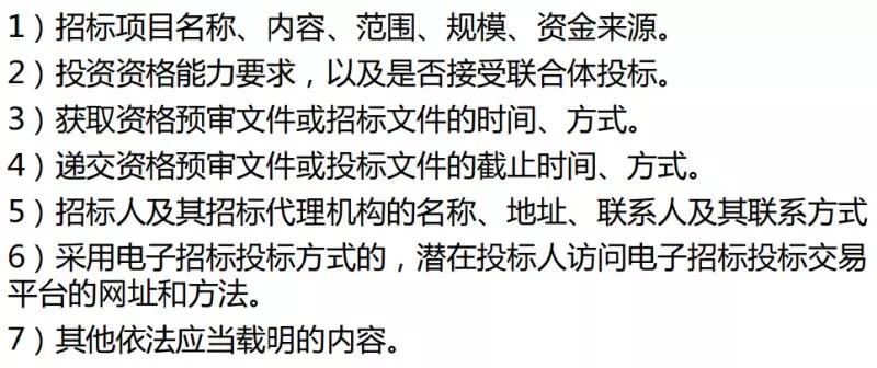 1.依法必须招标项目的资格预审公告和招标公告,应当载明以下内容:(新增)