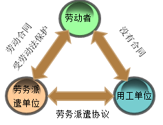 显著特征是劳动者的聘用与使用分离(聘用单位是劳务派遣单位,使用单位是用工单位)。