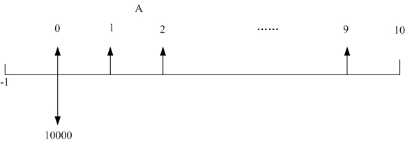 根据上图可知,需要将10000元现金折算到-1年初,然后再按照已知现值求年值的公式计算。
