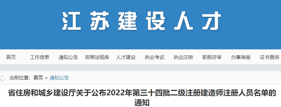 省住房和城乡建设厅关于公布2022年第三十四批二级注册建造师注册人员名单的通知