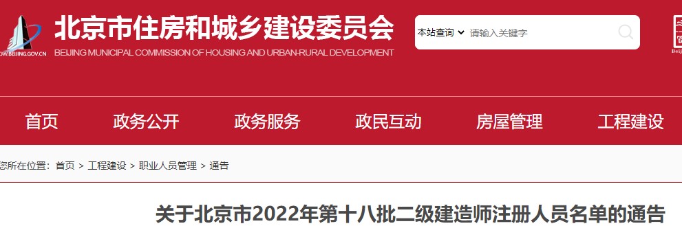 关于北京市2022年第十八批二级建造师注册人员名单的通告