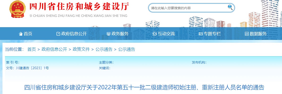 四川省住房和城乡建设厅关于2022年第五十一批二级建造师初始注册、重新注册人员名单的通告