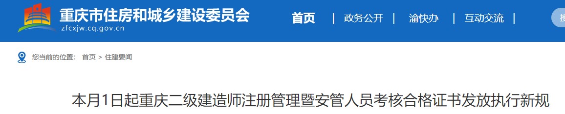 本月1日起重庆二级建造师注册管理暨安管人员考核合格证书发放执行新规