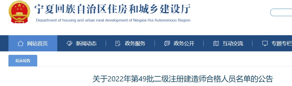 宁夏住建厅发布了2022年第49批二级建造师注册合格人员名单,原文如下。