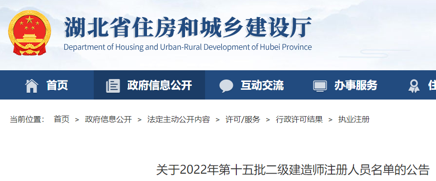 根据《注册建造师管理规定》(建设部令第153号)、《湖北省注册建造师管理办法》(鄂建〔2007〕48号)和《湖北省住房和城乡建设厅关于进一步优化二级建造师注册管理的通知》(鄂建文〔2022〕2号)等规定,经审核,申请注册二级建造师的892人符合二级建造师注册条件,准予注册。