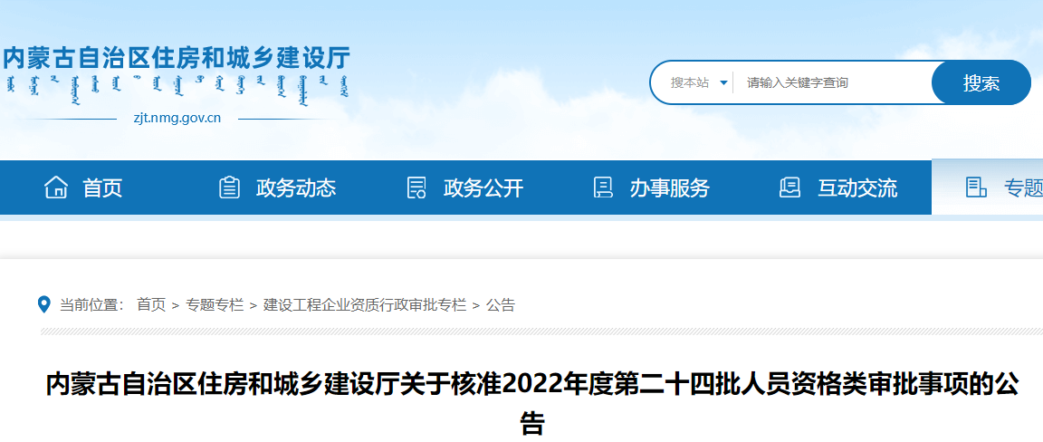 按照《中华人民共和国行政许可法》及住建领域人员资格管理有关法律法规规定,我厅对2022年度第二十四批人员资格审批事项进行了审查,现将核准的225名建筑施工企业“安管人员”人员名单、160名二级注册建造师人员名单、2名二级注册造价工程师人员名单、1名二级注册建筑师人员名单予以公布。未核准、注册的人员,可通过内蒙古自治区住房和城乡建设厅网站行政审批专栏“最新进度查询”中查询不予核准、注册原因。