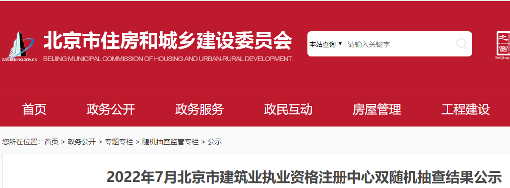 附件:2022年7月北京市建筑业执业资格注册中心双随机抽查结果公示信息.xls
