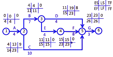 FFB=min{ES紧后}-EFB=min{3,3}-3=3-3=0
