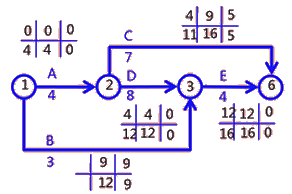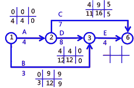 ②同起点相连的工作ES本=0;EF本=ES本+D本