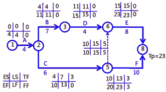 ②同终点相连的工作LF本=TP;LS本=LF本-D本