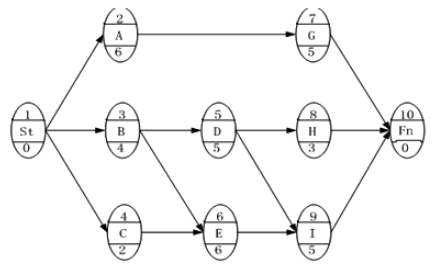 『答案解析』本题考查的是关键工作、关键路线和时差。关键线路只有1条B-E-I,计算工期为4+6+5=15天;G工作的总时差=15-11=4天,G工作的自由时差=15-11=4天;D工作最早完成是第9天,I工作最早开始是第10天,工作D、I之间有1天的时间间隔;H工作的自由时差=15-(4+5+3)=3天。