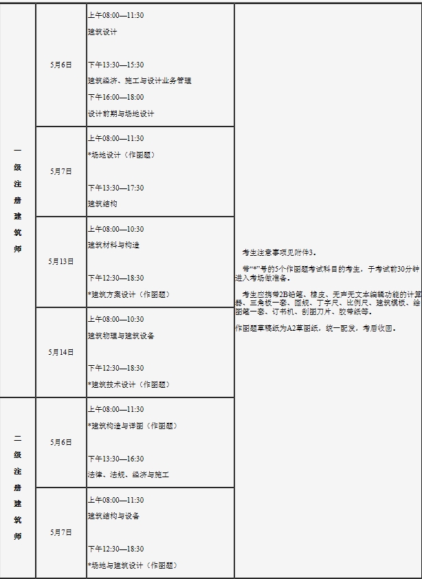 | 1 | 一二级注册建筑师 | 4月28日至5月4日 | 中国人事考试网 |