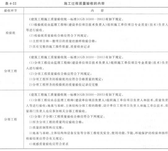 检验批;分项工程;分部工程;施工过程质量验收不合格的处理方法。