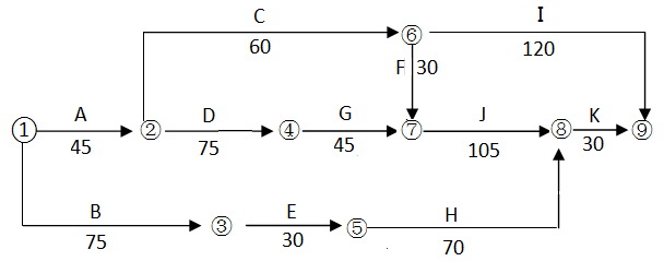 (2)因为G工作第121天(45+75+1)开始,E工作在第120天完工即可,而E工作的持续时间为30天,只要能保证E和G连续施工,就能使吊塔不闲置,所以第91天(121-30)安排塔吊入场可使其不闲置。