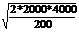 施工企业所需的某种材料,年度采购总量为2000吨,材料价格为6000元/吨,一次订货成本为4000元,每吨材料的年平均储备成本为200元。根据经济批量模型,该种材料的经济采购批量为()吨。