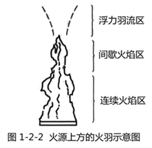 (1)烟气羽流。燃烧中,火源上方的火焰及燃烧生成的流动烟气通常称为火羽流。而火焰区上方为燃烧产物即烟气的羽流区,其流动完全由浮力效应控制,一般称其为烟气羽流或浮力羽流。由于浮力作用,烟气流会形成一个热烟气团,在浮力的作用下向上运动,在上升过程中卷吸周围新鲜空气与原有的烟气发生掺混。