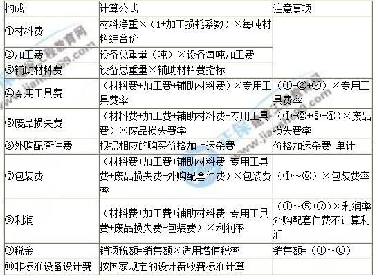 2.国产非标准设备原价:不能批量生产。采用成本计算估价法、系列设备插入估价法、分部组合估价法、定额估价法等方法确定。(计插组定)