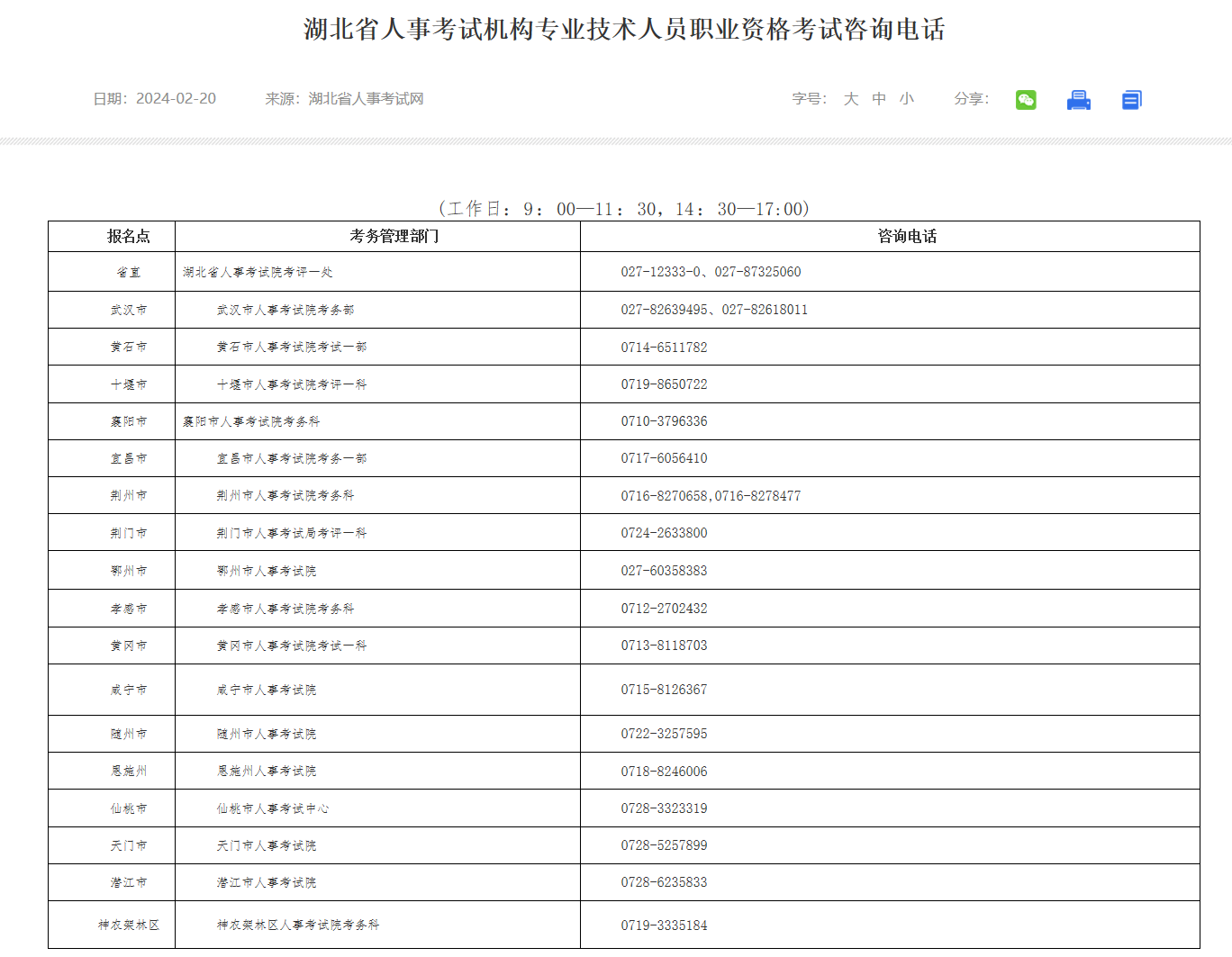 附件:湖北省人事考试机构咨询电话