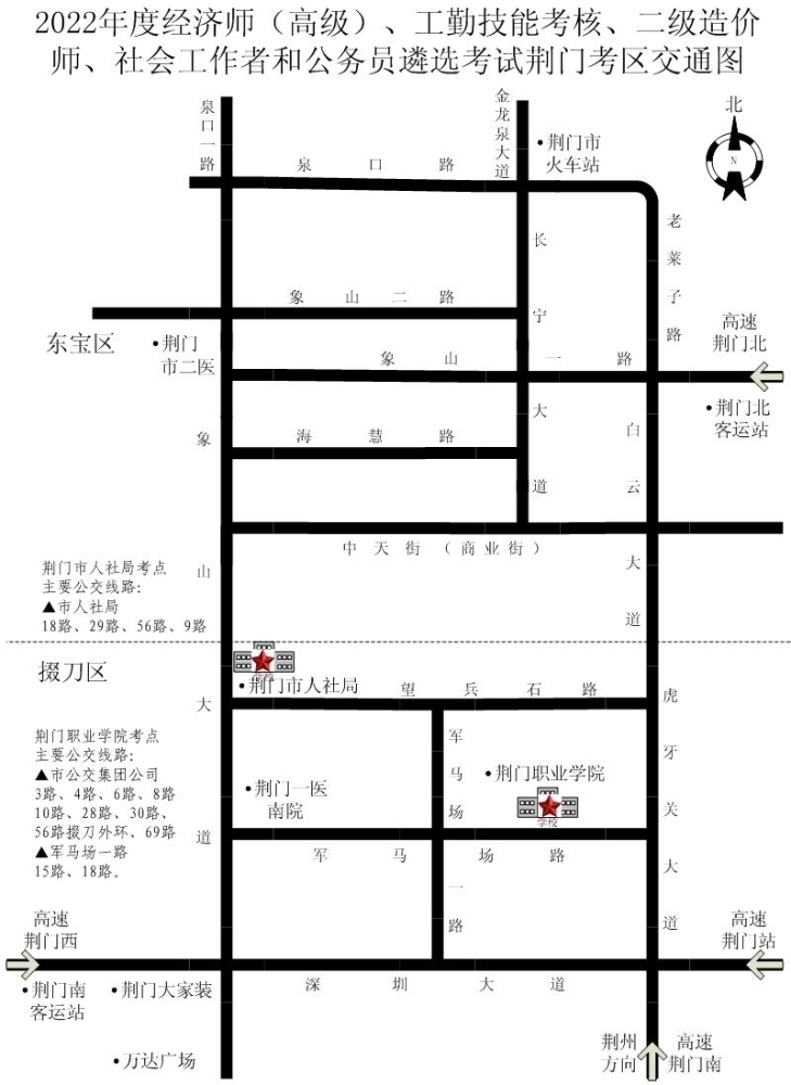 (二)荆门市人社局考点主要公交线路: