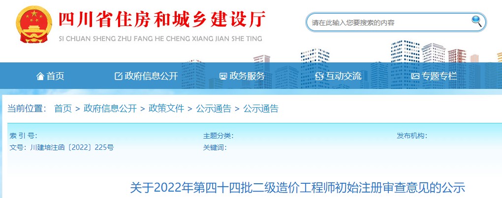 关于2022年第四十四批二级造价工程师初始注册审查意见的公示