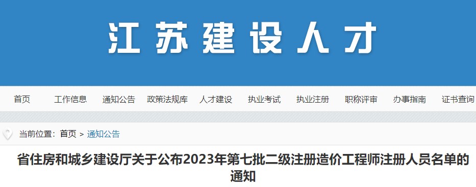 江苏省发布2023年第七批二级造价师注册人员名单,通知如下。