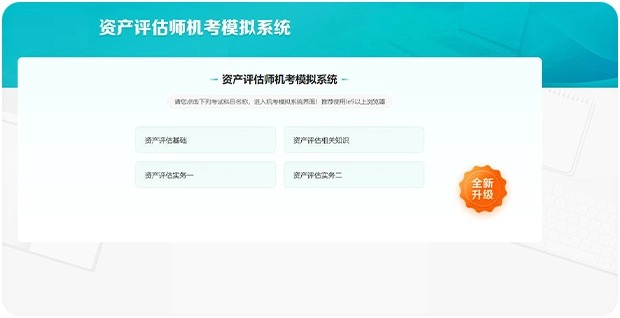 资产评估师职业资格全部实行无纸化考试,考试在计算机上进行。有限的时间在计算机上完成答题,要求考生熟悉机考操作环境。机考模拟系统提供大量模拟试题,通过实战演练,锻炼考生的答题速度!
