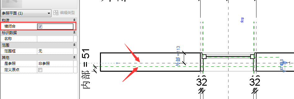 勾选墙闭合的参照平面对多只能有两个,一个控制内部,一个控制外部。内外包络距离由这两个参照平面控制。