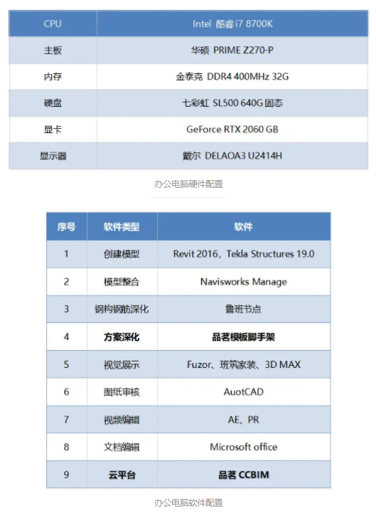 下面我们再来看一下本次BIM应用的软硬件配置: