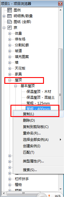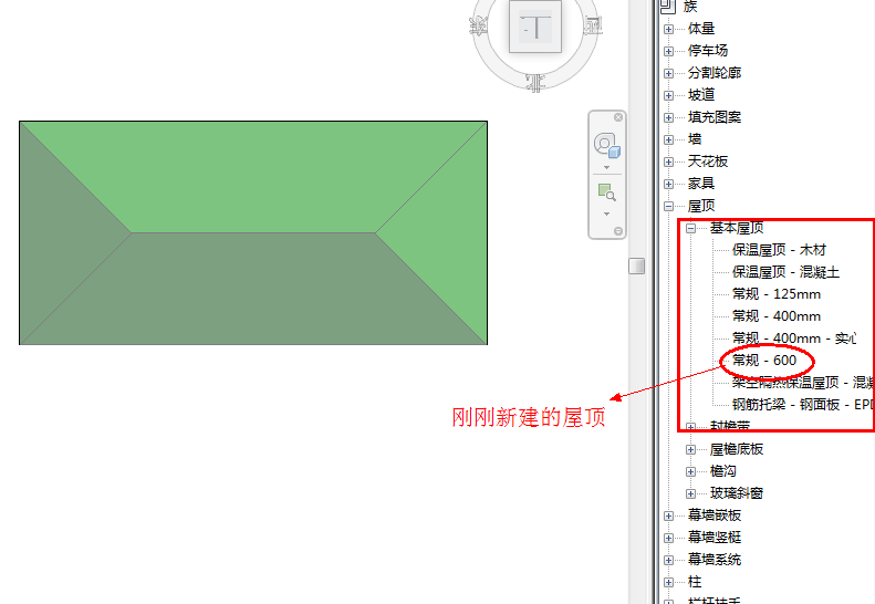 正确新建屋顶的方法是在项目浏览器的族文件下面选中屋顶族,单击右键进行新建。