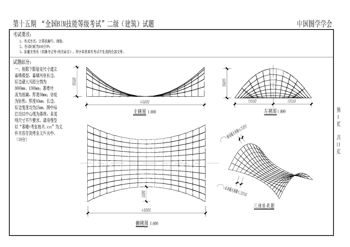 第十五期全国BIM技能等级三级(建筑设计)考试