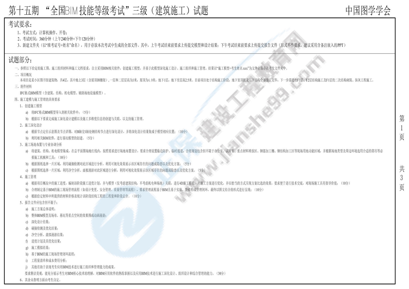 第十五期全国BIM技能等级三级(建筑施工)试题