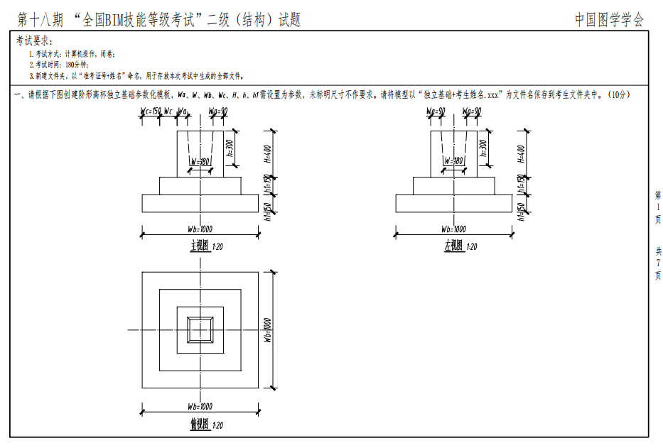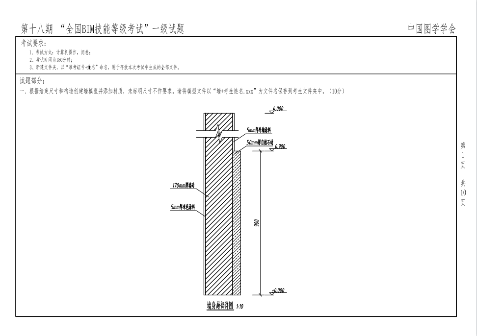 中国图学学会“全国BIM技能等级第十二期考试”试题免费下载